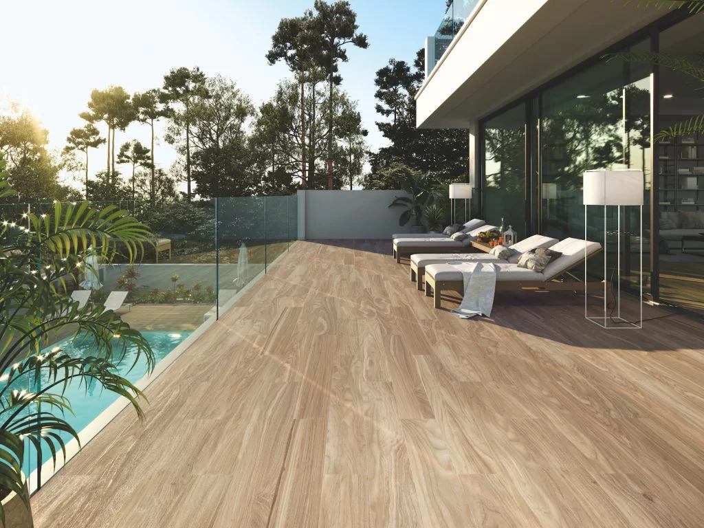 Los suelos para exteriores son perfectos para áreas al aire libre como terrazas, patios, zonas junto a la piscina y espacios de ocio en jardines. Gracias a su gran resistencia a la humedad, el calor y los cambios de temperatura, resultan una opción confiable para ambientes exteriores.